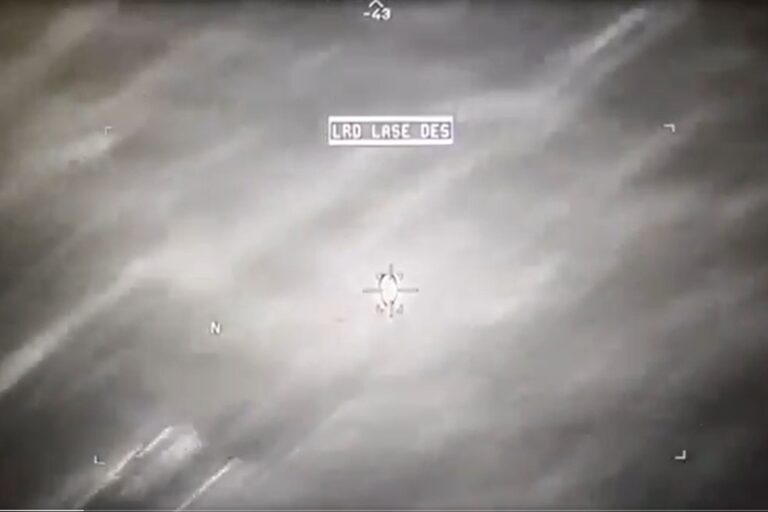 Imagens inéditas de um Objeto Voador Não Identificado (OVNI) sendo atingido por um míssil Hellfire e resistindo ao ataque foram apresentadas durante